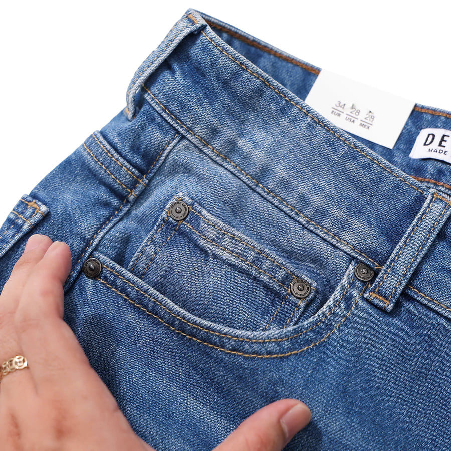 Điểm cộng lớn của quần short jean Defoxx là chất liệu denim cao cấp, co giãn nhẹ. Mang lại cảm giác thoải mái suốt ngày dài. Vải jean được xử lý wash kỹ càng, không bị phai màu, giữ form tốt sau nhiều lần giặt. Đường may tỉ mỉ, chắc chắn. Đảm bảo độ bền khi vận động mạnh, giúp bạn an tâm sử dụng lâu dài.